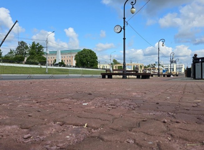 На Красной пристани начались работы по покраске участков брусчатки. Мэр акцентировал внимание на спуске с улицы Карла Либкнехта — уже этим летом здесь приведут в порядок тротуары и восстановят дорожное покрытие.